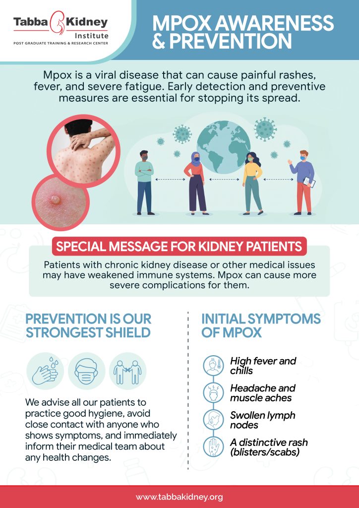The Tabba Kidney Institute (Post Graduate Training & Research Center) is committed to providing excellent care and guidance. Please do not hesitate to contact our team with any questions or concerns you have regarding Mpox, your kidney health, or your specific treatment plan. If you are experiencing symptoms or have concerns about potential exposure, it is vital to speak with a specialist who understands the intersection of viral infections and renal health.